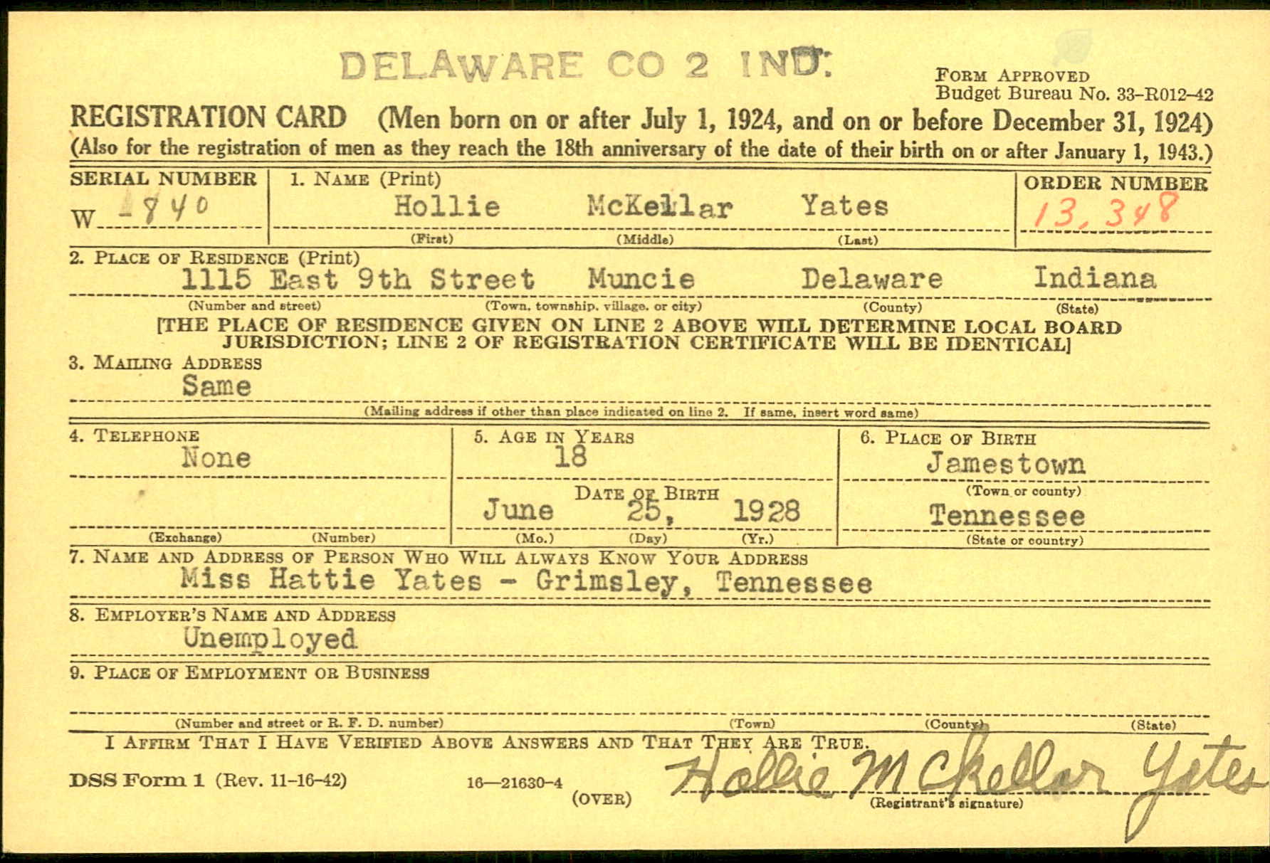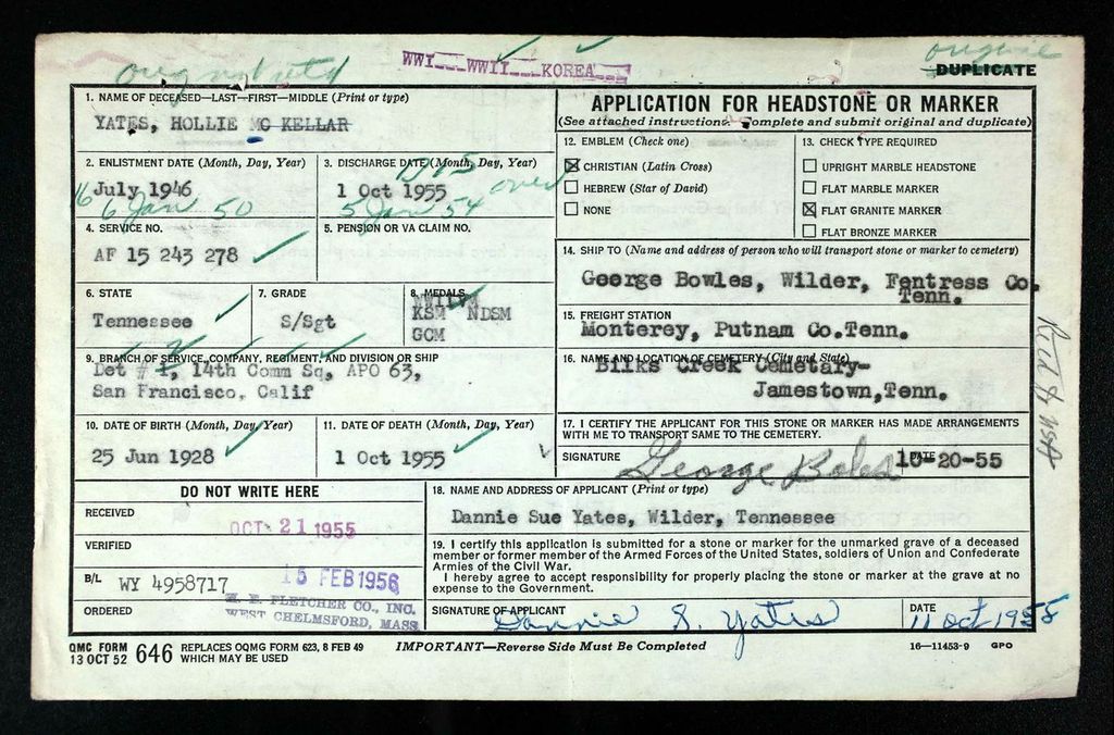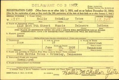 Hollie McKellar Yates was born on 25 June 1928, the son of John Milton Jates and Sarah Ann Adkins
