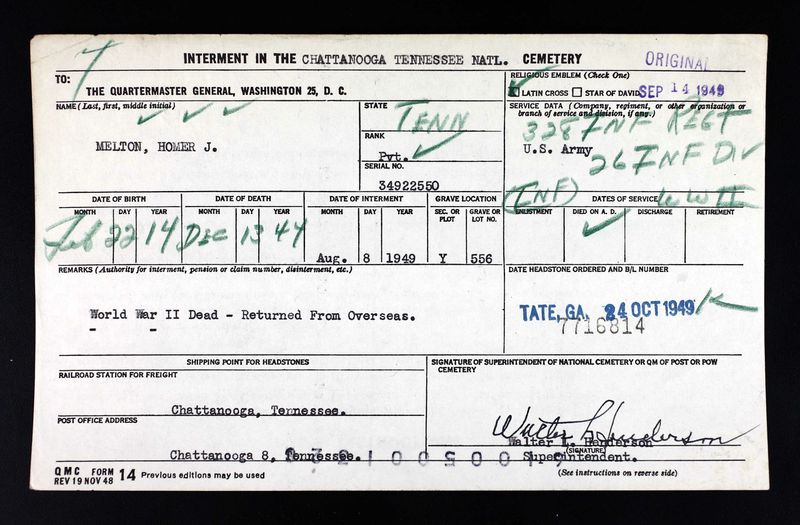 - Burial/Memorial Location: Chattanooga National Cemetery, Chattanooga, TN