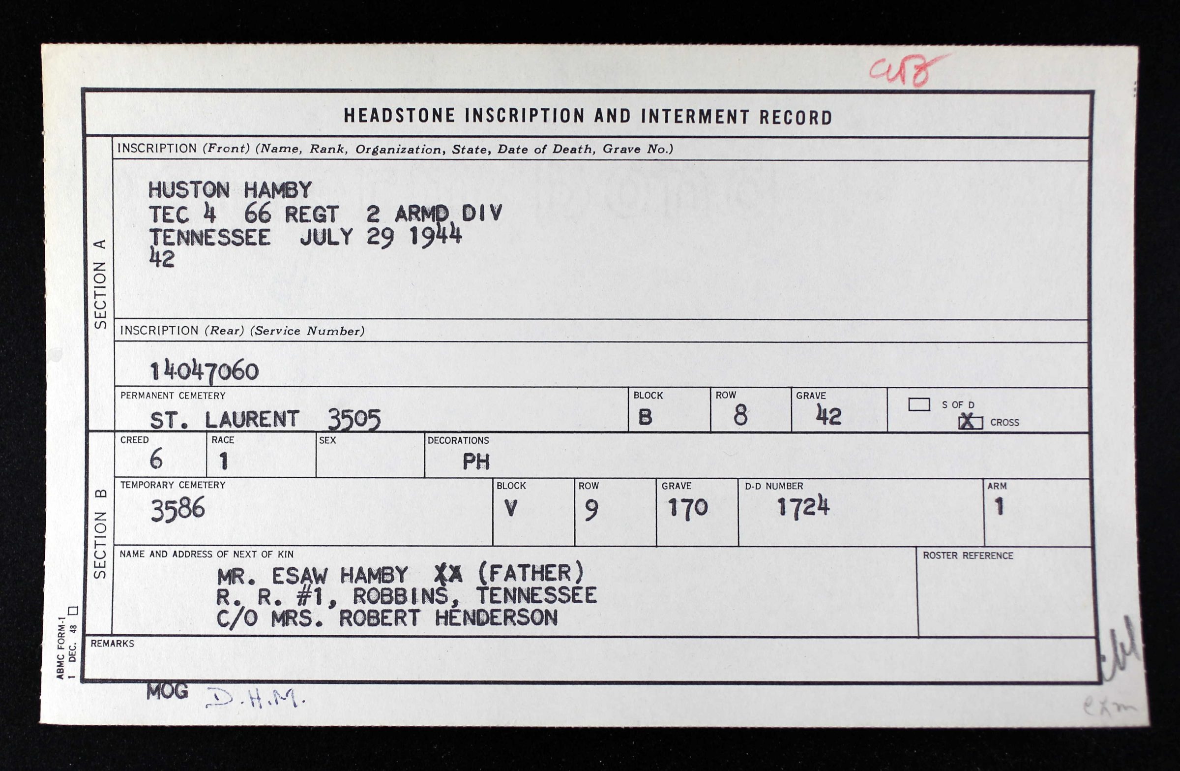 Houston Hamby is registered as Huston Hamby. He was the son of Esau Hamby and Frances Henry.