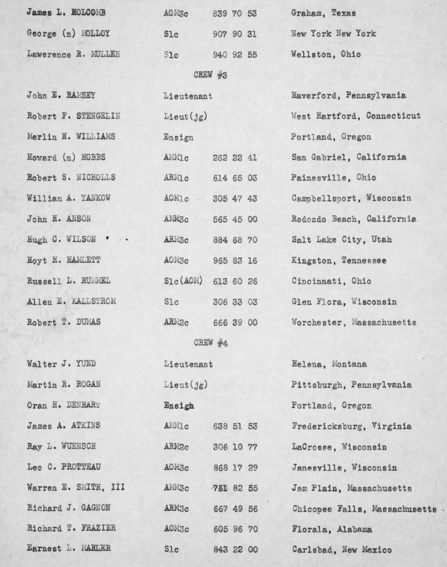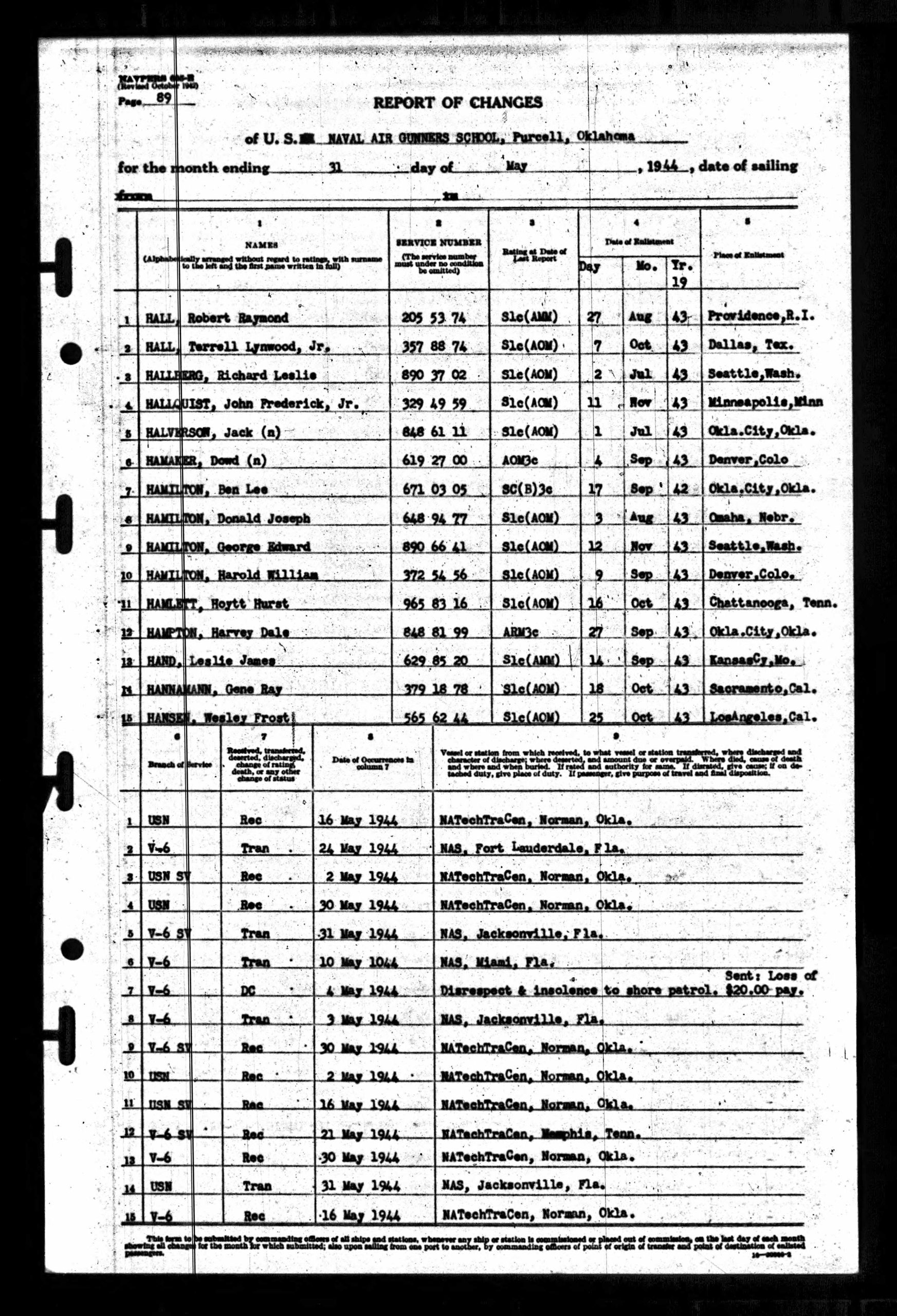 He completed training at the Naval Air Technical Training Center in a mid-western state in June 1944 and was transferred to a naval unit. He was killed 24 July 1945 while flying over the Korean area.