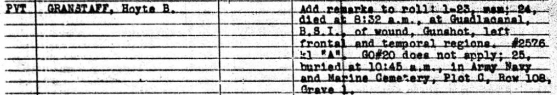 Died 24 January 1945 at Guadalcanal of gunshot wounds.