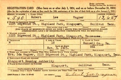 Hubert Lee Wagner was born on 3 November 1925 in Virginia, the son of Abijah Wagner and Ida Bell Blakley.
