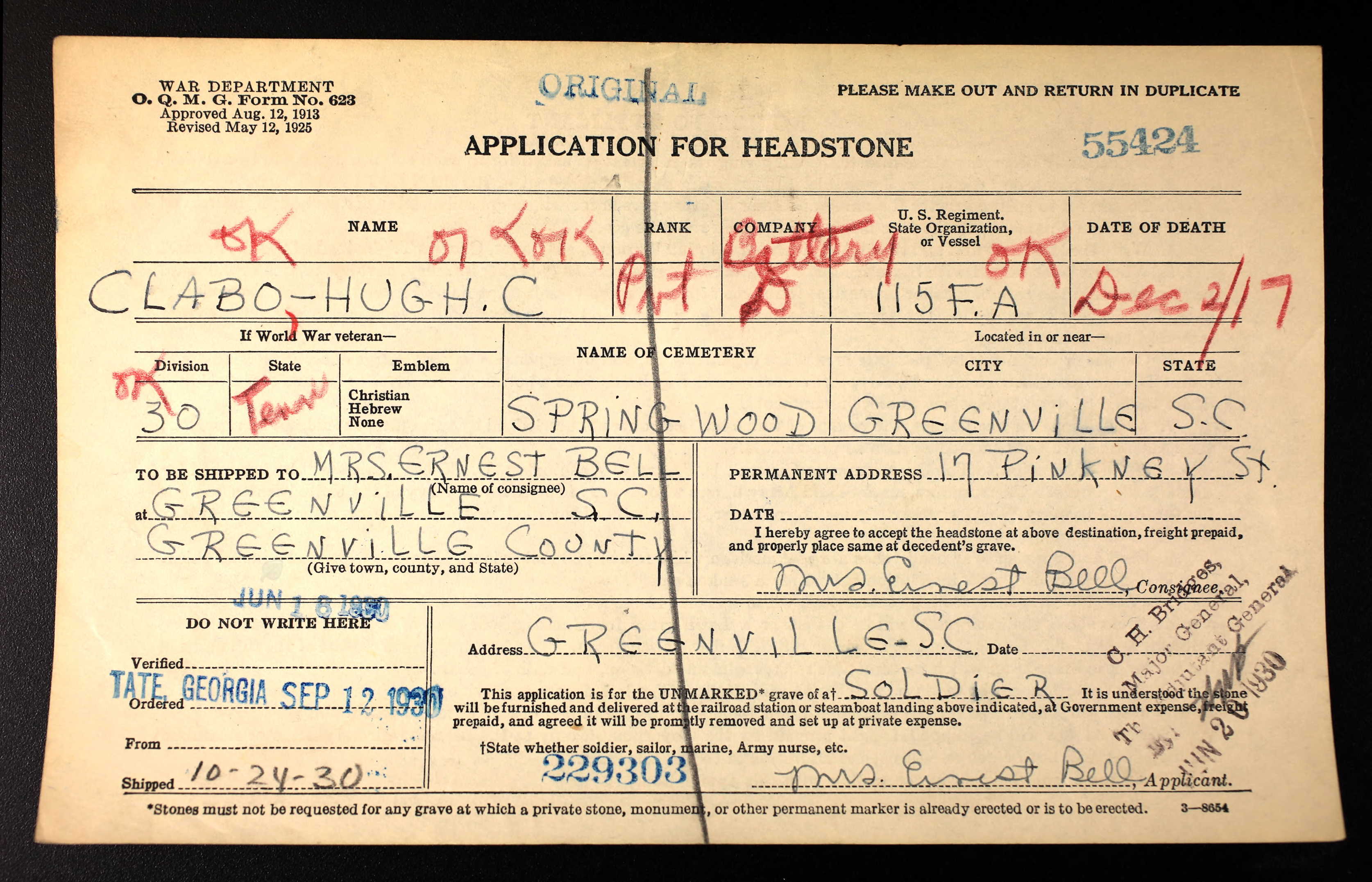 - Division/Assignment: Battery D, 115th Field Artillery, 30th Division