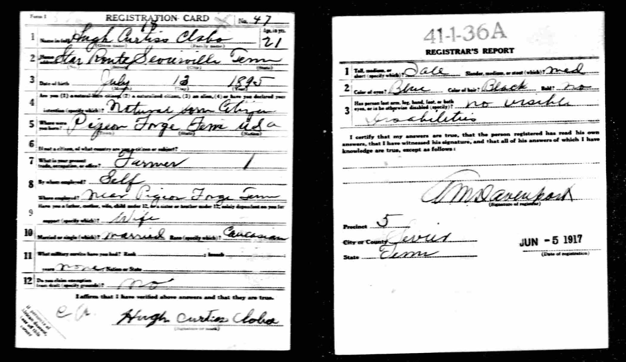 Born 13 July 1895, Pigeon Forge, Sevier County, Tennessee