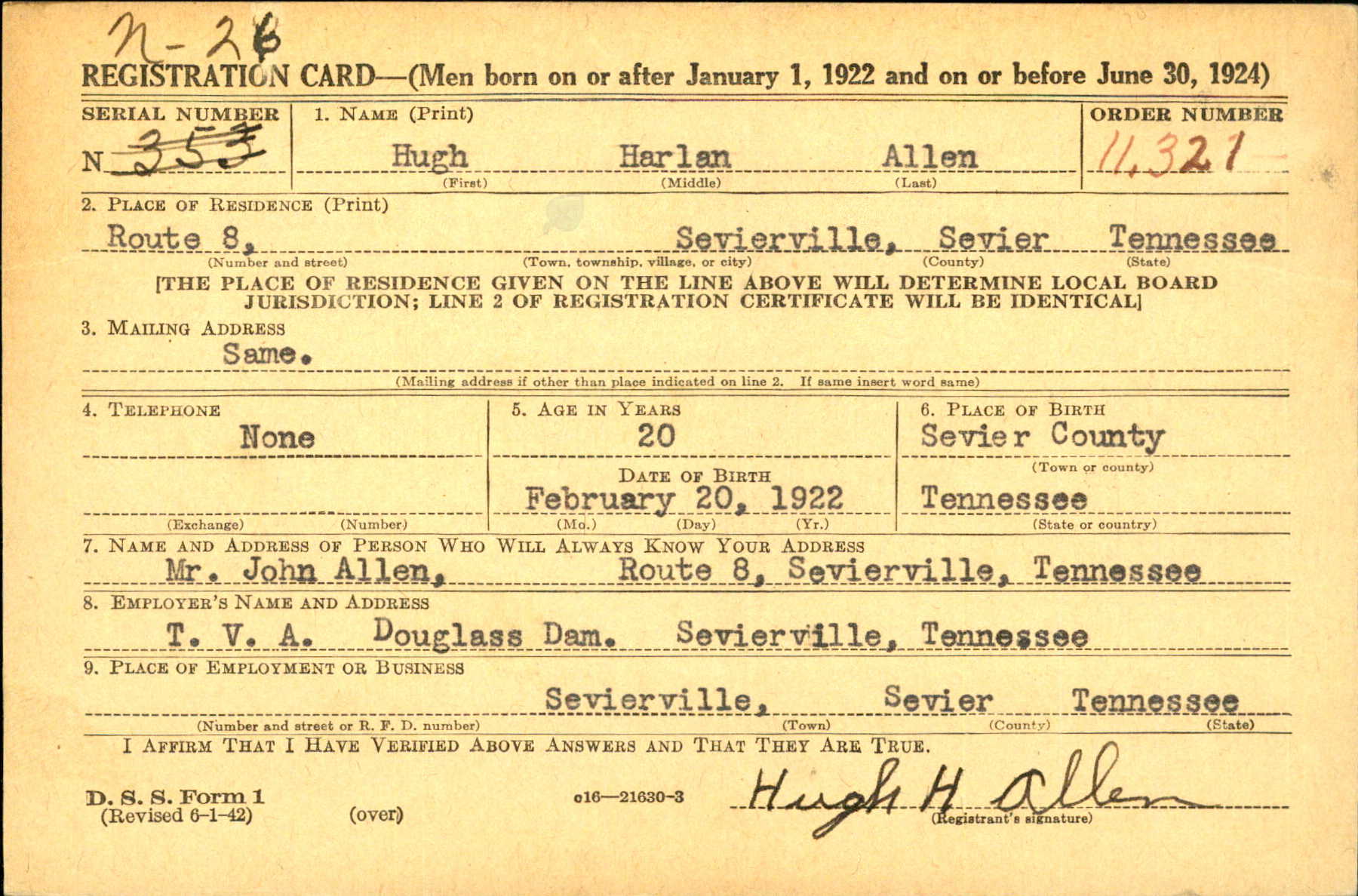 Hugh Harlan Allen was the son of John Wilson Allen and Lillie Allen.