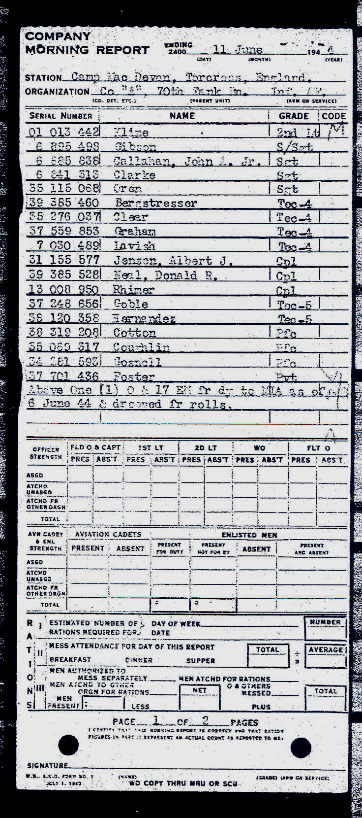 - Service Branch: Army/Army Air Forces