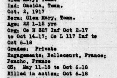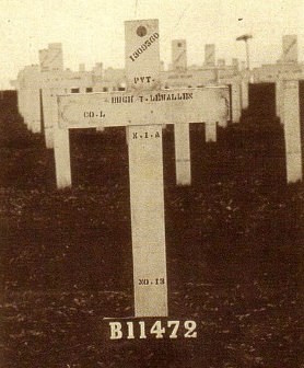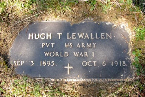 Private Lewallen was killed in action during the Battle of the Argonne Forest in 1918. He was originally buried in France. The cross marks the spot of his first resting place.