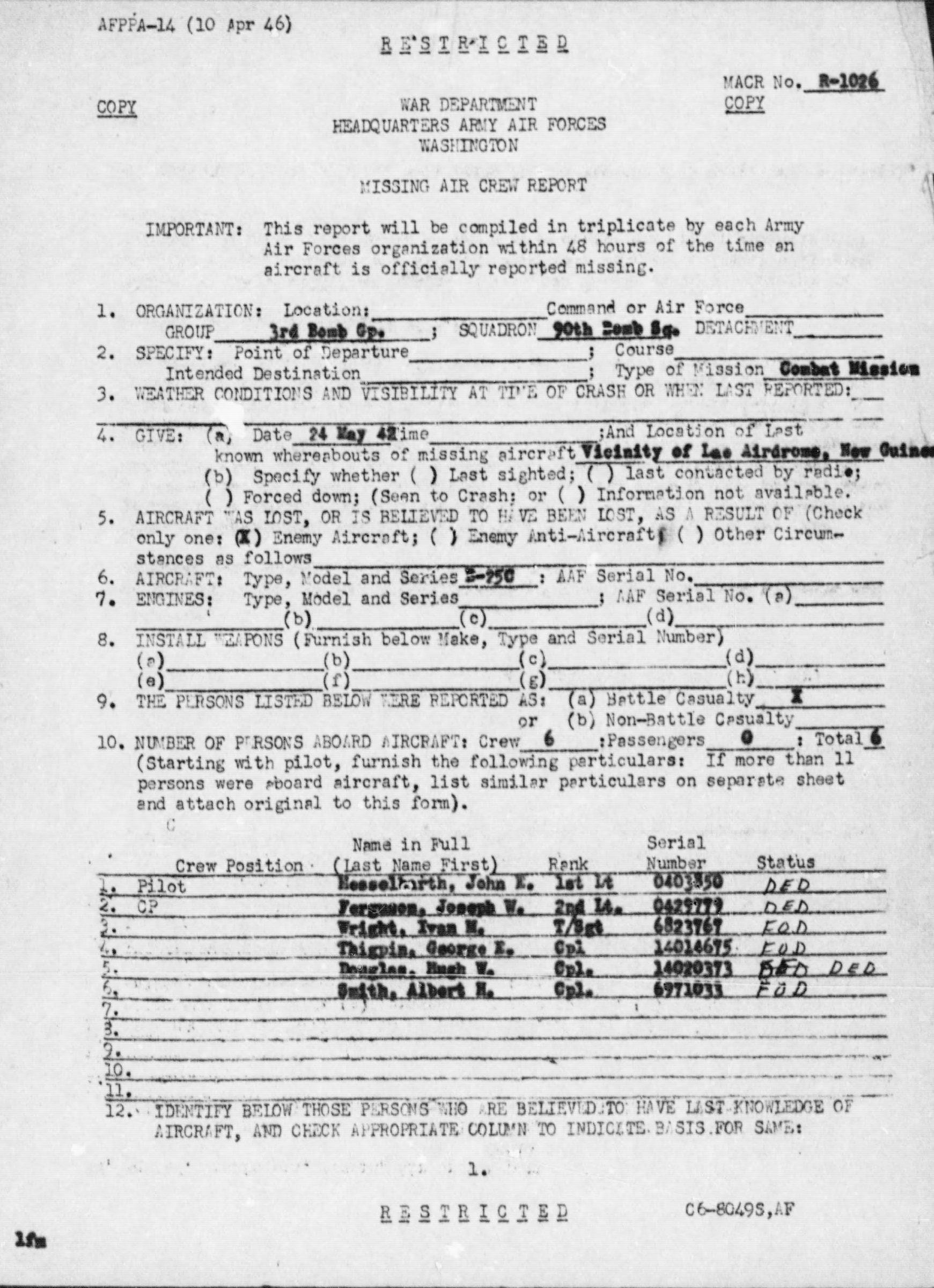 - Service Branch: Army/Army Air Forces