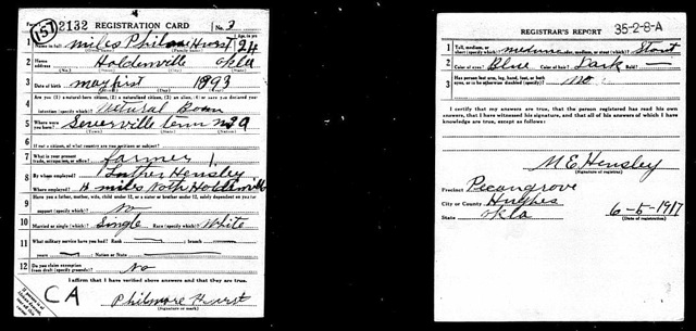 Miles Philmore Hurst was born 1 May 1893, Sevierville, TN, son of Joseph and Nancy Hurst.