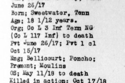 - Division/Assignment: Company L, 117th Infantry Regiment, 30th Division