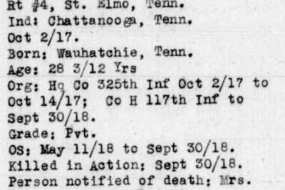 - Division/Assignment: Company H, 117th Infantry Regiment, 30th Division