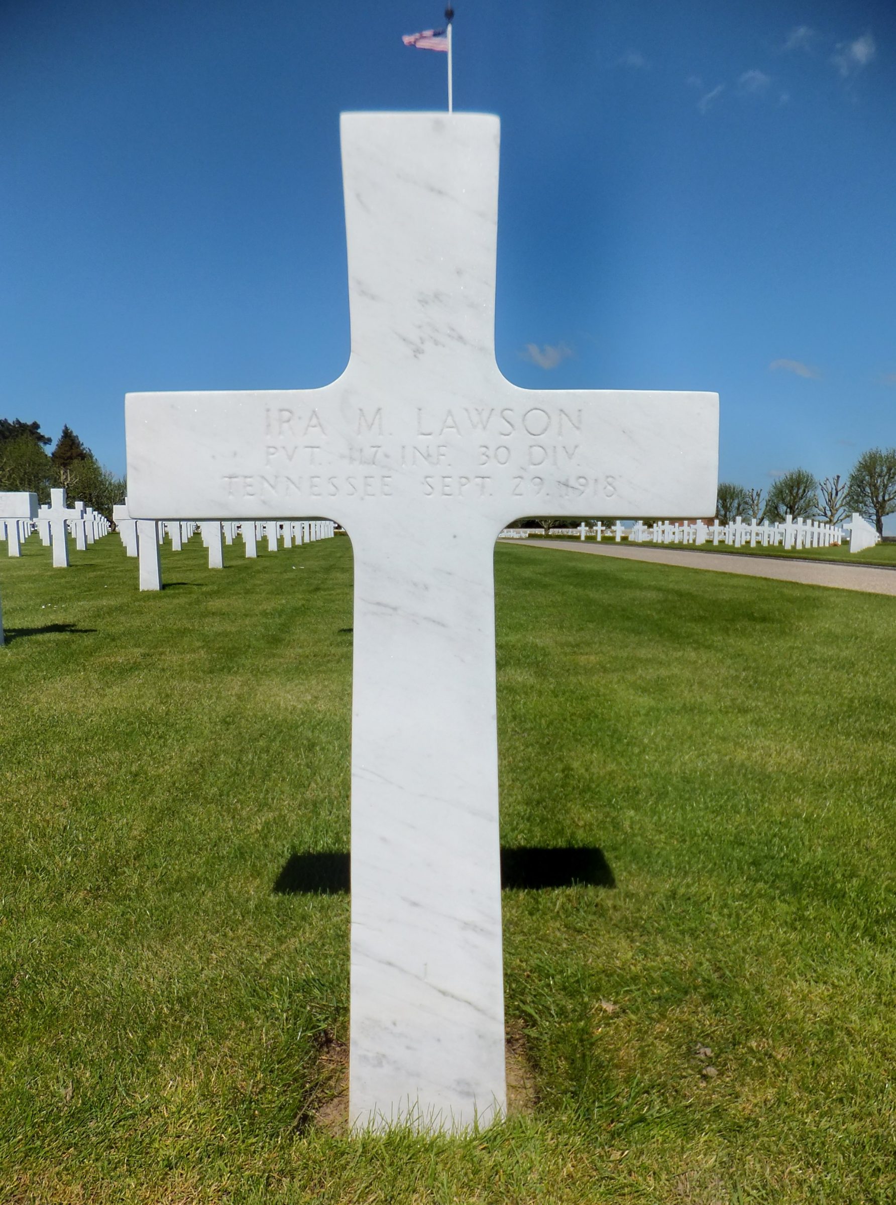 He was killed in action at the age of 30, and is buried plot A, row 19, grave 7, Somme American Cemetery, Bony, France.