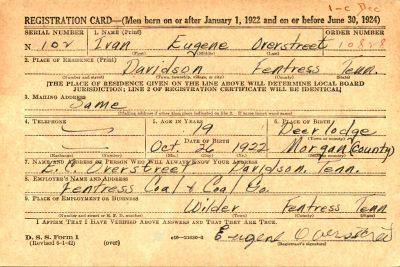 Private Ivan Eugene Overstreet was the son of Estel Claude Overstreet and Minerva Asberene Kennedy.