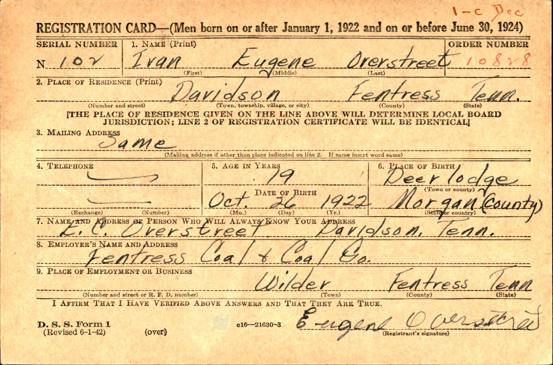 - Burial/Memorial Location: Clarkrange Cemetery, Clarkrange, TN