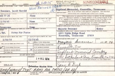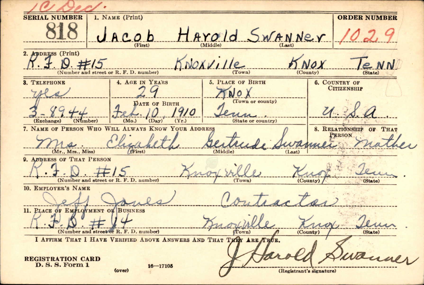 Jacob Harold Swanner was the son of Elizabeth Gertrude Swanner (Knoxville, Tennessee)