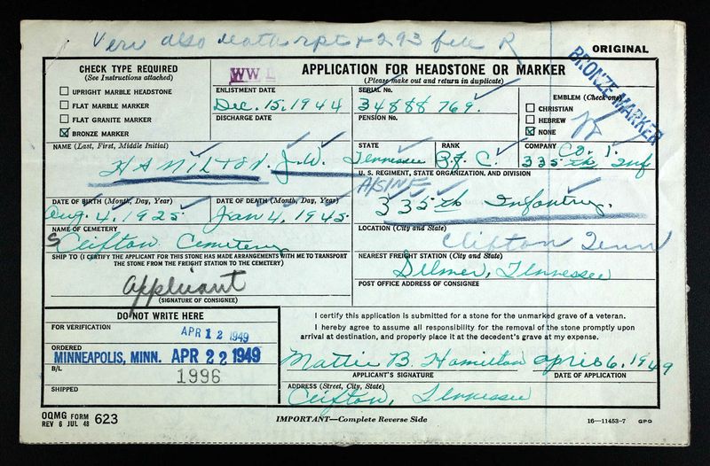 - Burial/Memorial Location: Clifton Cemetery, Clifton, TN