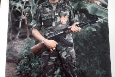 “This is worthy of special recognition during operation 22C/52 on 28 May 1969 when the 4/52d Infantry Regiment made savage contact with the enemy at YT 537006, southeast of Xuan Loc, Long Khanh Province. The numerically superior enemy launched vicious assaults against the battalion’s perimeter. 1LT Walker, cooly and side by side with ARVN soldiers, maneuvered the units counterattack. Additionally, subject officer guided in effective Allied air and artillery support which repulsed the enemy assaults, inflicting heavy casualties on them and forced them to withdraw. Results: 23 enemy soldiers KIA, 1 82 mm, 2 60mm mortars, 8 BARs, 2 B-41’s, 1 B-40, 7 AK’s, 9 Thompson submachineguns, and 20 CKC’s were captured.”