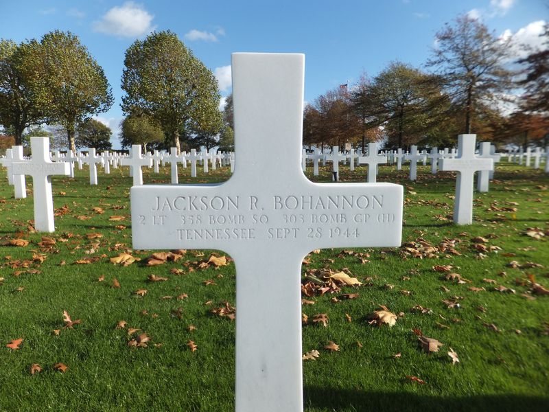 2Lt Bohannon was a Bombardier assigned to the 358th Bomber Squadron, 303rd Bomber Group, Heavy, flying B-17s out of Molesworth England. He was killed in action on 28th of September 1944, and is interred at J,9,12 Netherlands American Cemetery, Margraten, the Netherlands.