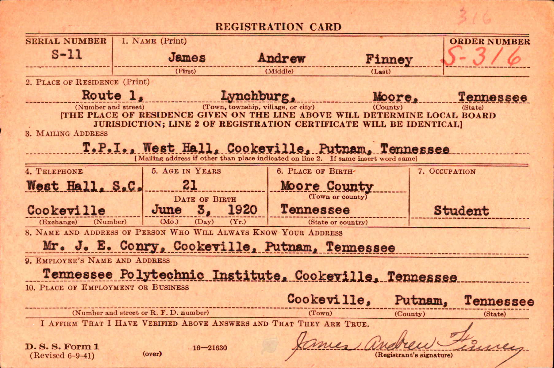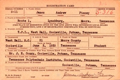 James Andrew Finney was born in Moore County, Tennessee, the son of Walter Crawford Finney and Huldah Massey. Husband of Emogene Swallows.