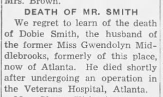 He died on 28 February 1946 in the veterans hospital in Atlanta, Georgia while undergoing an operation. He is buried in Spring City Cemetery.