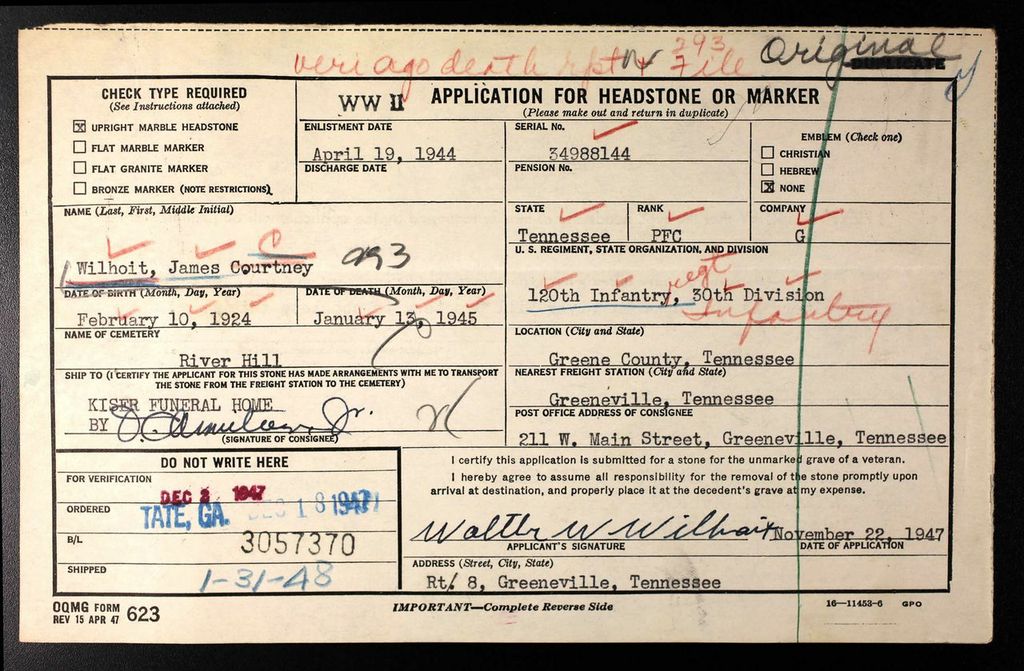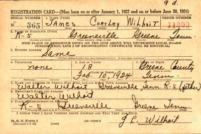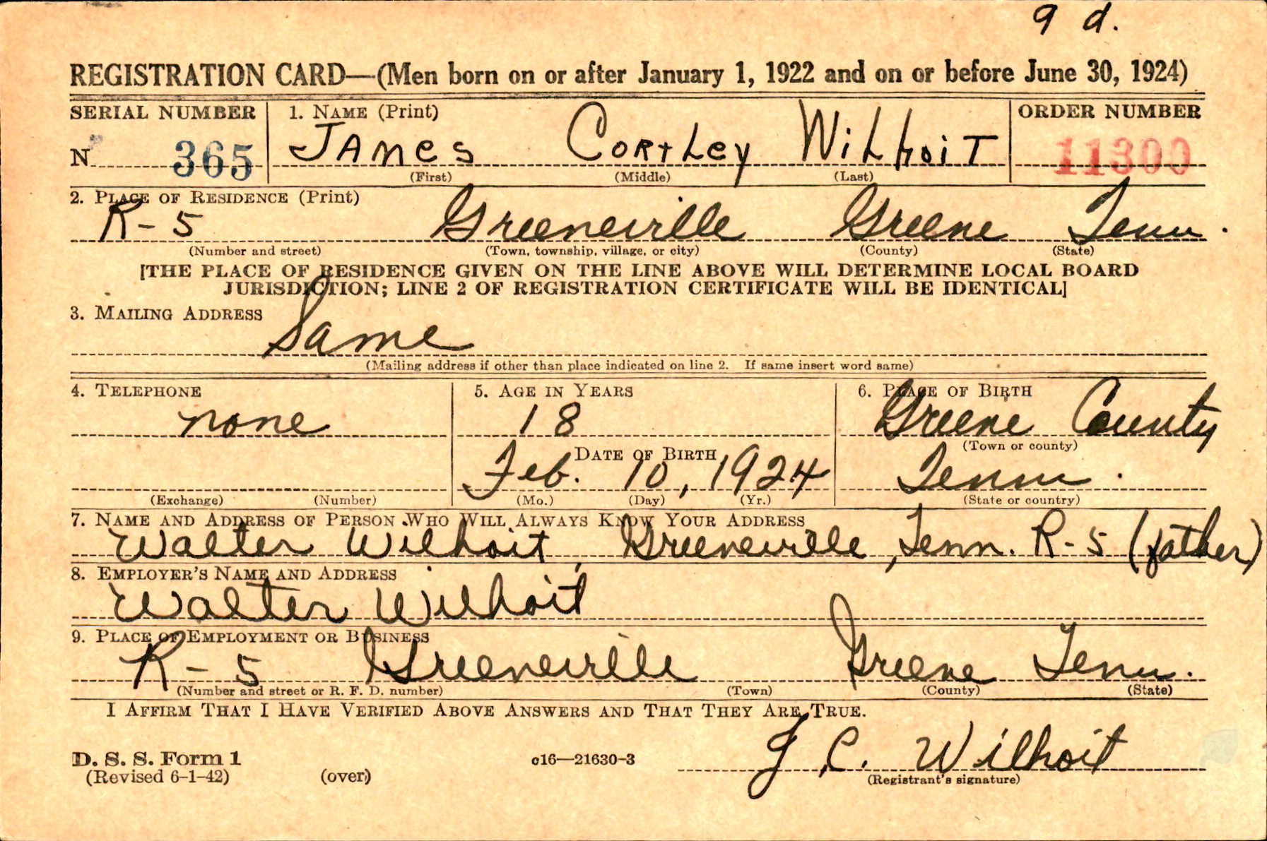 James Courtney Wilhoit was born 10 February 1924 to Walter Warren Hilhoit and Flora Bell Sizemore