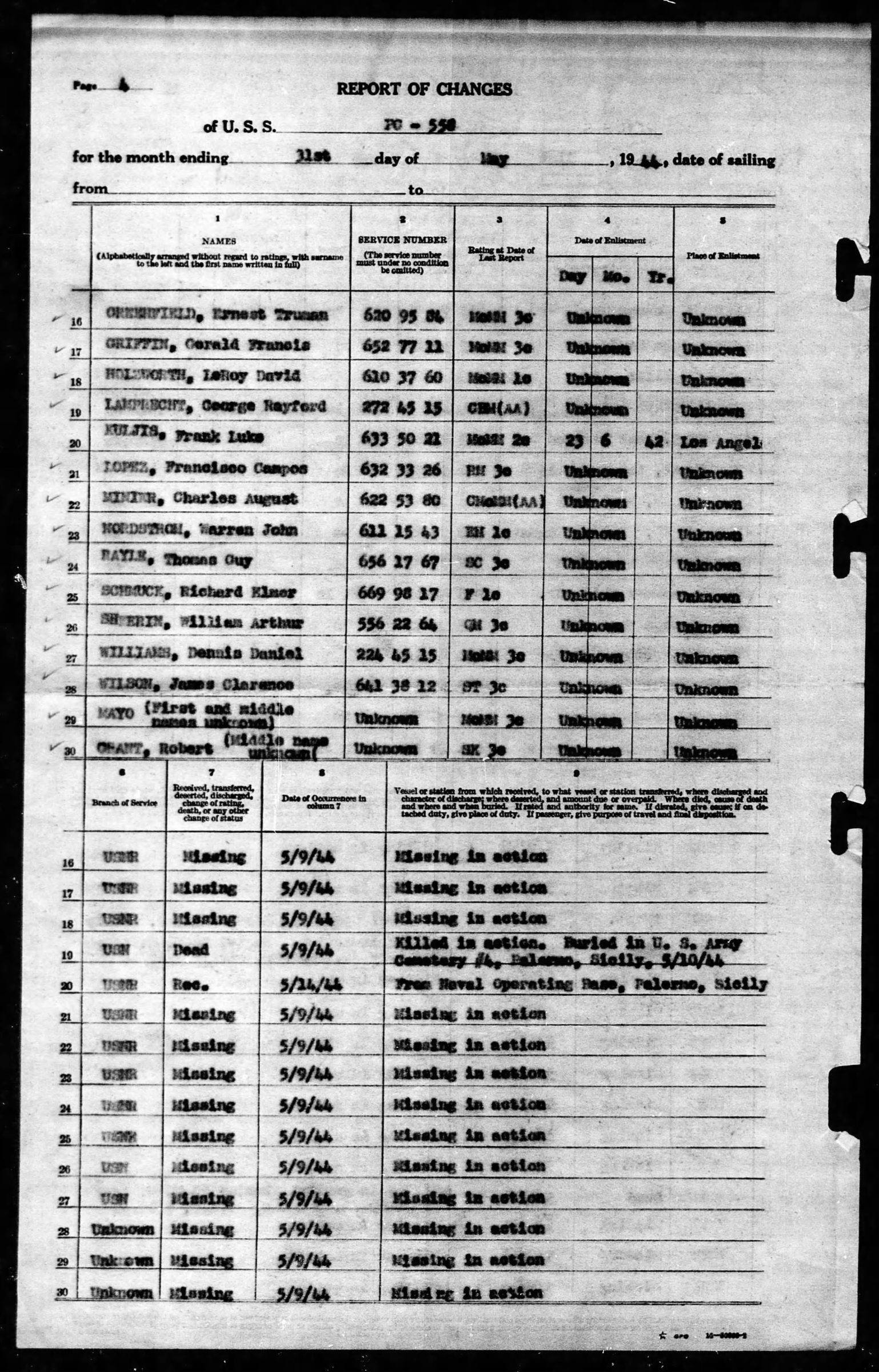 Memorialized at Sicily-Rome American Cemetery, Nettuno, Italy