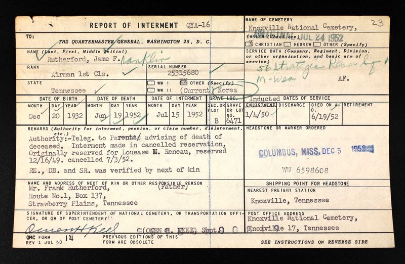 - Burial/Memorial Location: Knoxville National Cemetery, Knoxville, TN