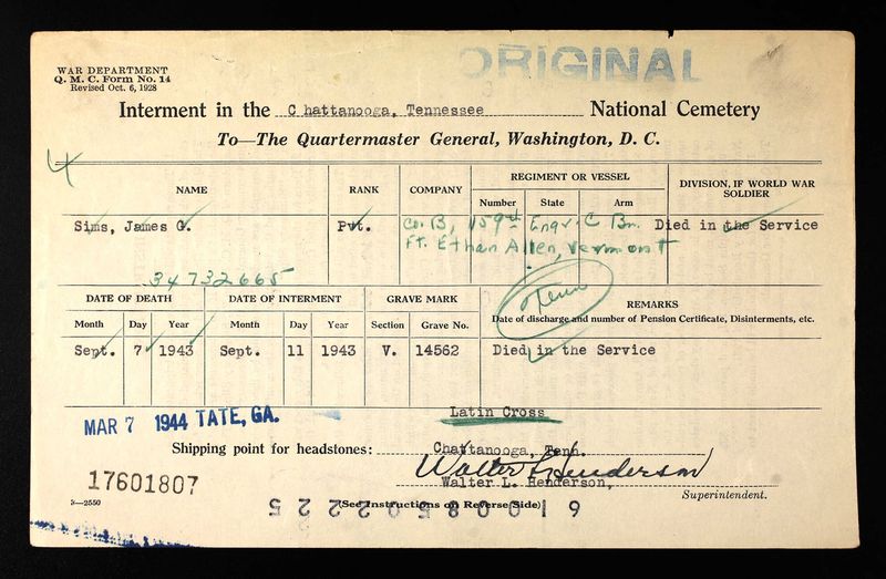 - Burial/Memorial Location: Chattanooga National Cemetery, Chattanooga, TN