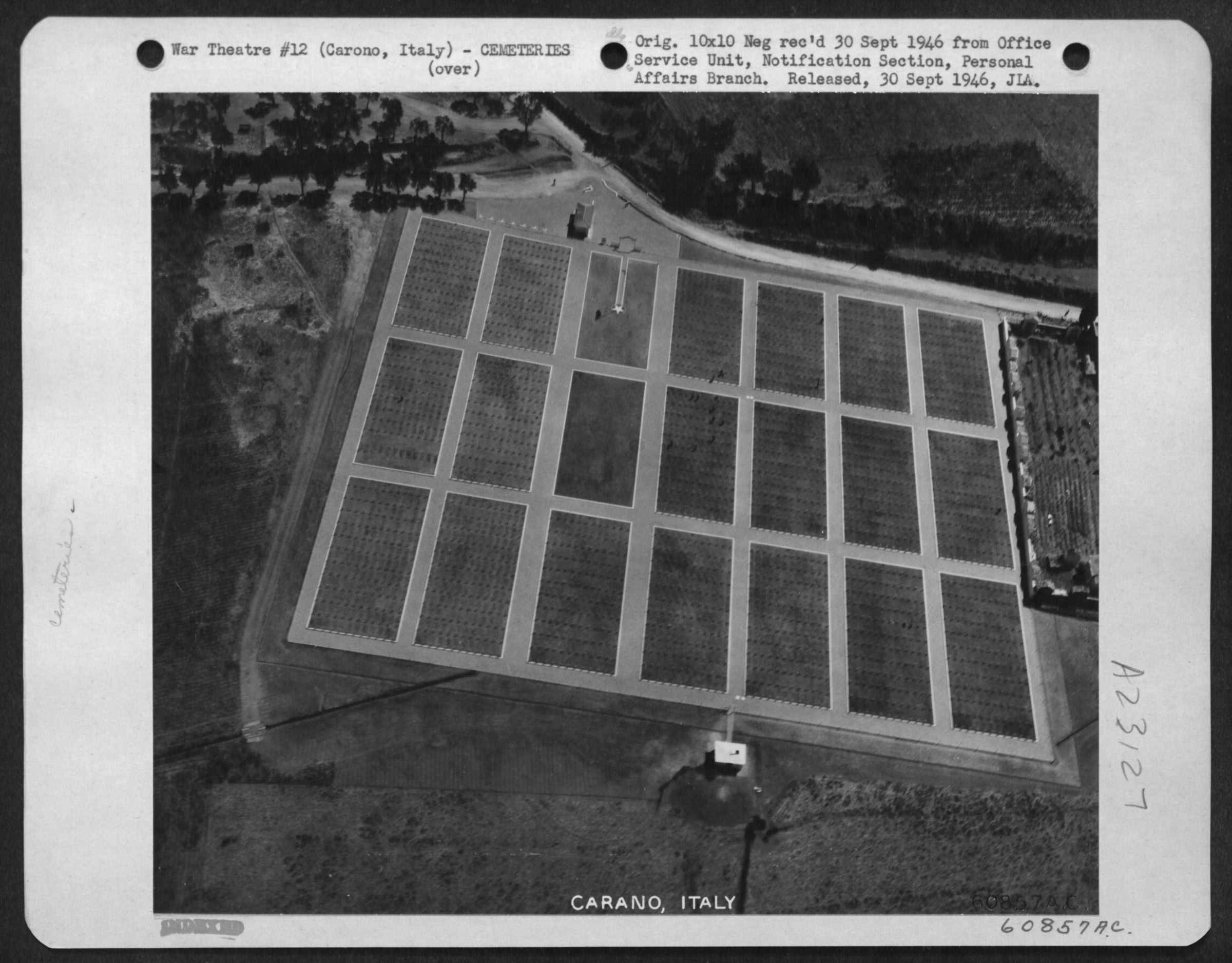 Sergeant Forester was killed in action on the 11th of March 1944. He was initially buried at Carono Cemetery at Carono, Italy and reburied at Sicily-Rome American Cemetery, H,10,52, Nettuno, Italy.