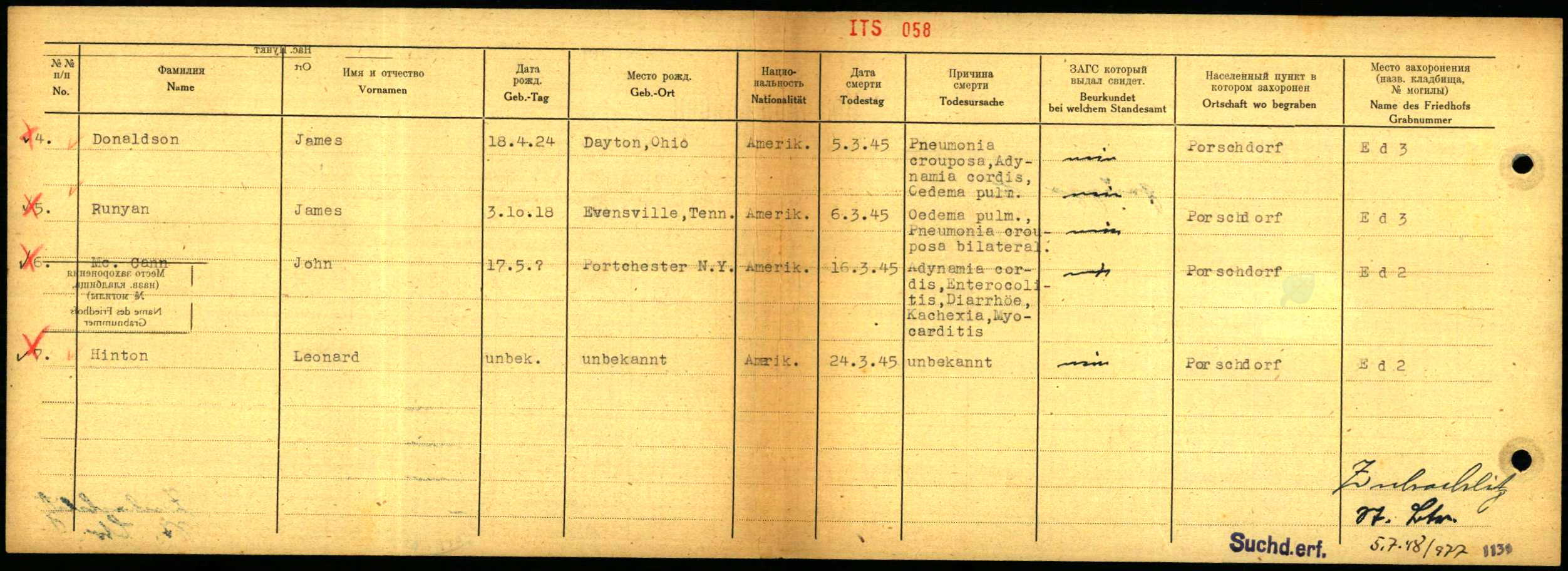 He was taken prisoner of war on 6 January 1945 and was taken to Stalag 4A Hohnstein (Airfield at Dresden-Klotsche) (No Base Camps: 13 Work Camps) Saxony 51-14 . He died on 6 March 1945 of pulmonary edema and lateral pneumonia and was initially buried in Porschdorf, Germany.