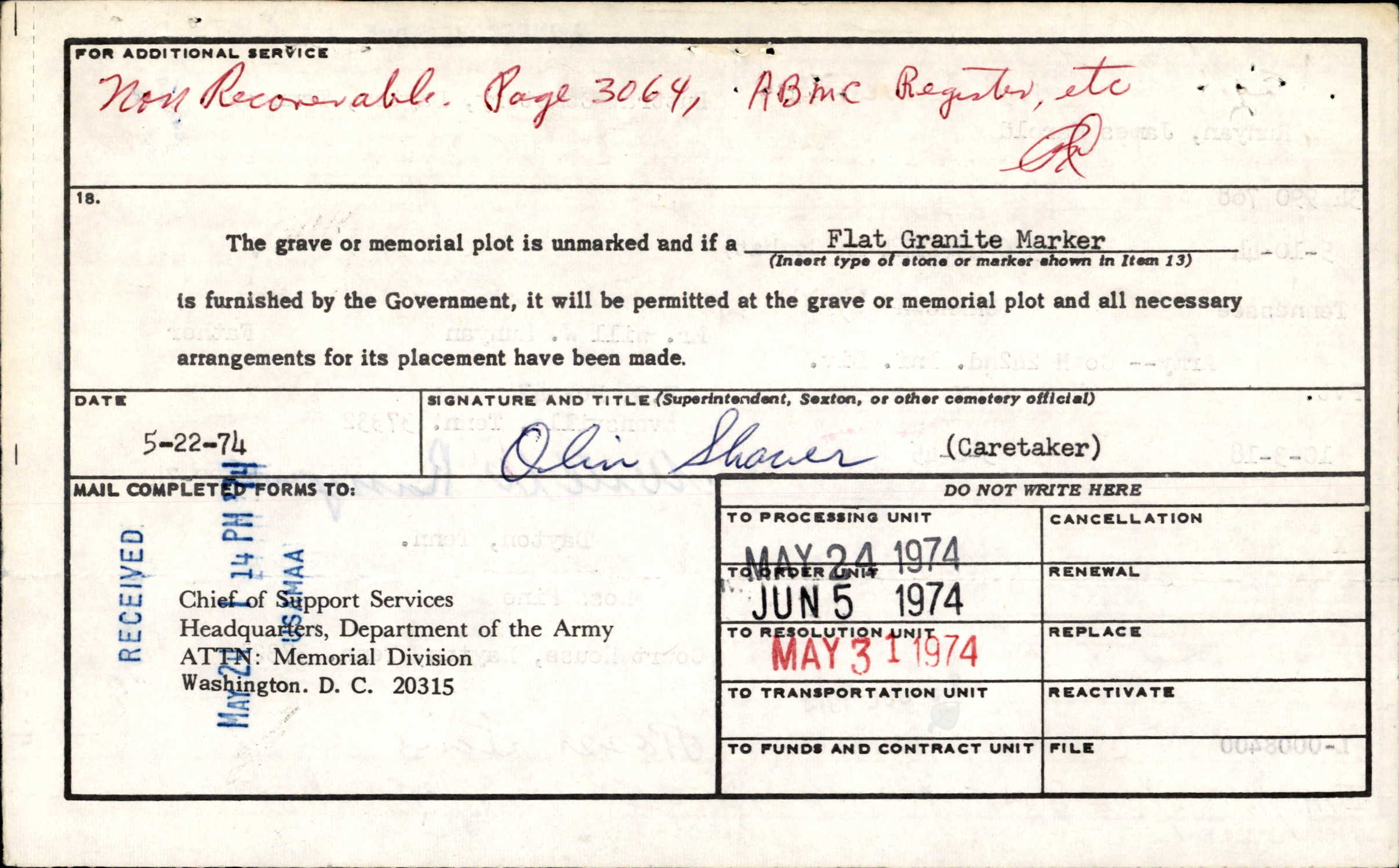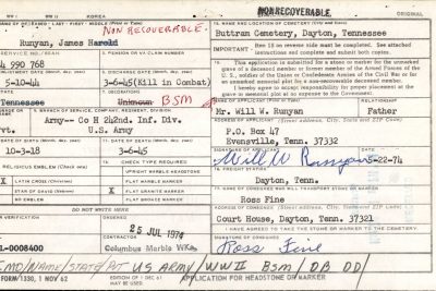 He is memorialized at Epinal American Cemetery, Epinal (Vosges), France and in Buttram Cemetery in Dayton, Tennessee.