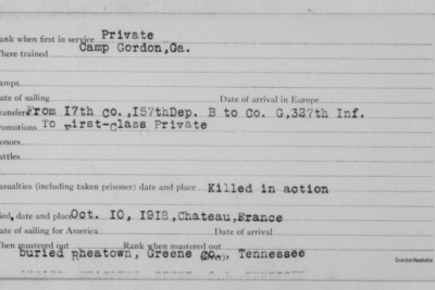 - Division/Assignment: Company G, 327th Infantry Regiment, 82nd Infantry Division