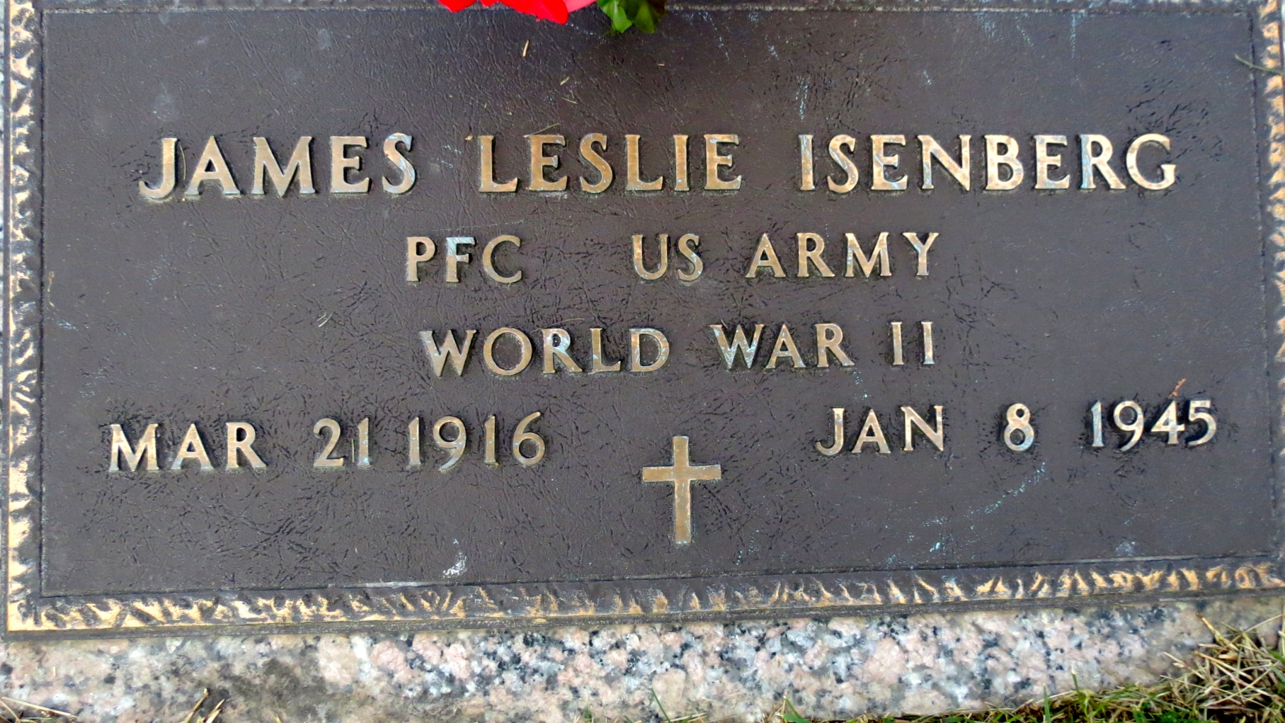 The body of Private First Class James Leslie Isenberg, who was killed in Belgium January 8, 1945, while serving with the Army’s 76th General Hospital, will arrive in Honesboro for reburial.