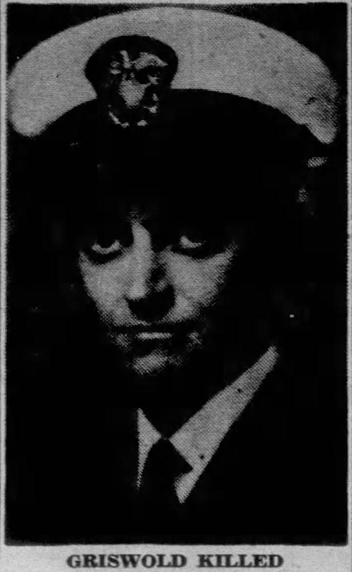 On the 19th of March 1945, The Franklin was off the Coast of Honshu when a Japanese plane dropped out of the clouds and dropped bombs on her deck. Lt Griswold was killed in action 19th of March 1945. He is memorialized at Honolulu.