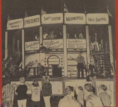 Ronnie and his father Speedy McNish toured the United States with county fairs. They had a daredevil show called The Wall of Death. They drove motorcycles inside a dome-shaped wood barrel. It was an exciting show to watch. They rode their motorcycles around the wall of the barrel. I first saw Ronnie and his father when I was 13 years old. I never forgot him or his Dad. Every year I would go to the fair to see them. I miss him very much and that beautiful smile. I was able to contact Ronnie and wrote to him in Vietnam. He is still in my heart always. –Frances Elaine Spaetti