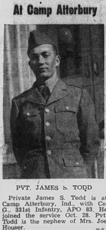 Private James S. Todd is at Camp Atterbury, Ind., with Co. G, 331st Infantry, APO 83. He joined the service Oct. 28. Pvt. Todd is the nephew of Mrs. Joe Houser.