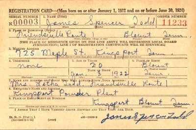 Private James S. Todd, nephew of Mr. and Mrs. Joe Houser, of Maryville, died in a general hospital, somewhere in England, on July 4th. Pvt Todd was attached to the 331st Infantry and had been in service since Oct. 23, 1942.