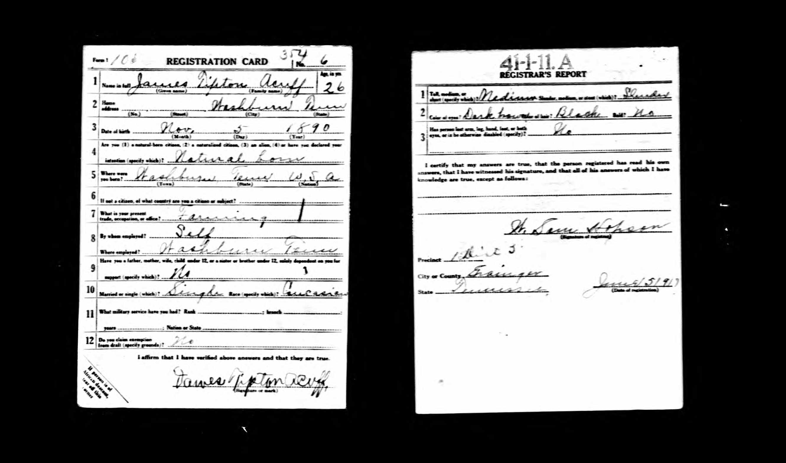 James Tipton Acuff was born 5 November 1890, Grainger County, Tennessee