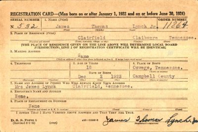 Parents: Mr. and Mrs. James Thomas Lynch Sr., Clairfield, TN