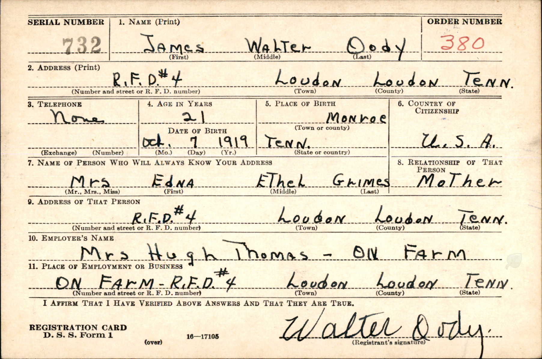 James Walter Oody was born 7 October 1919 to General Harrison Oody and Edna Ethel Huskins. He was the husband of Lillie Lindsey.