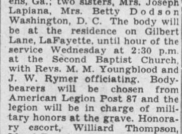 - Burial/Memorial Location: Lafayette Cemetery, Lafayette, Georgia