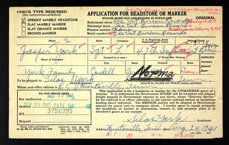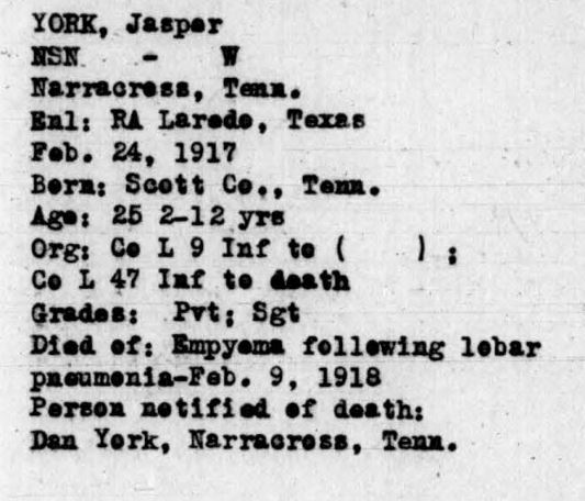 - Burial/Memorial Location: York Cemetery, Cordell, TN