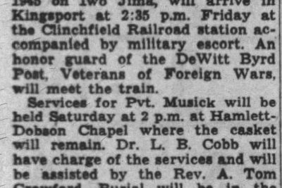 - Burial/Memorial Location: Kingsport City Cemetery, Kingsport, TN