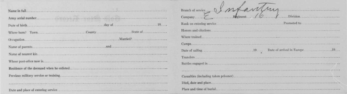 - Division/Assignment: Company E, 16th Infantry Regiment