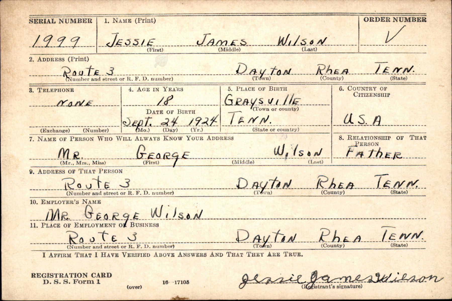 Jessie or Jesse James Wilson, son of Jessie George Wilson and Martha Lydia Chadwick.