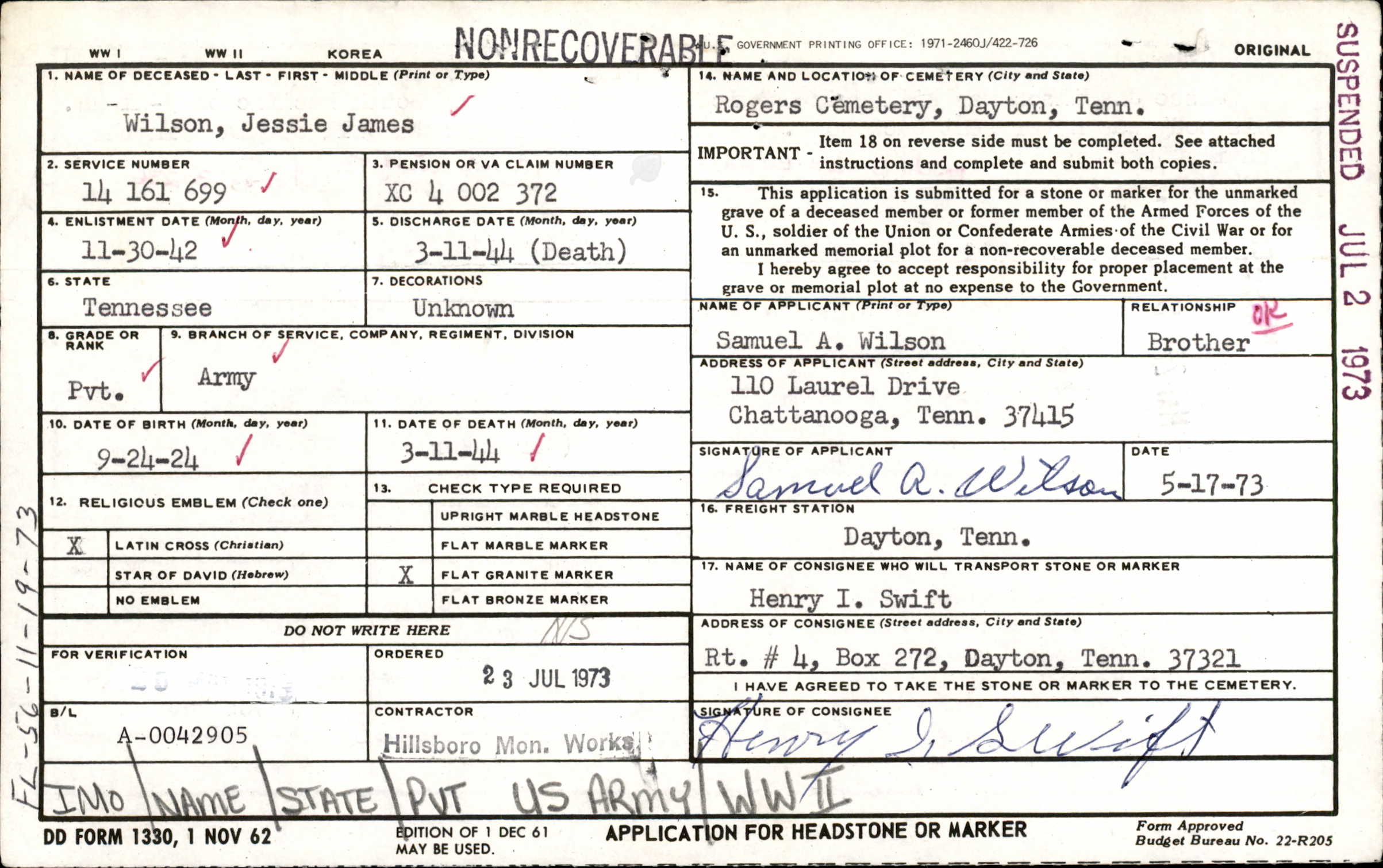 - Service Branch: Army/Army Air Forces