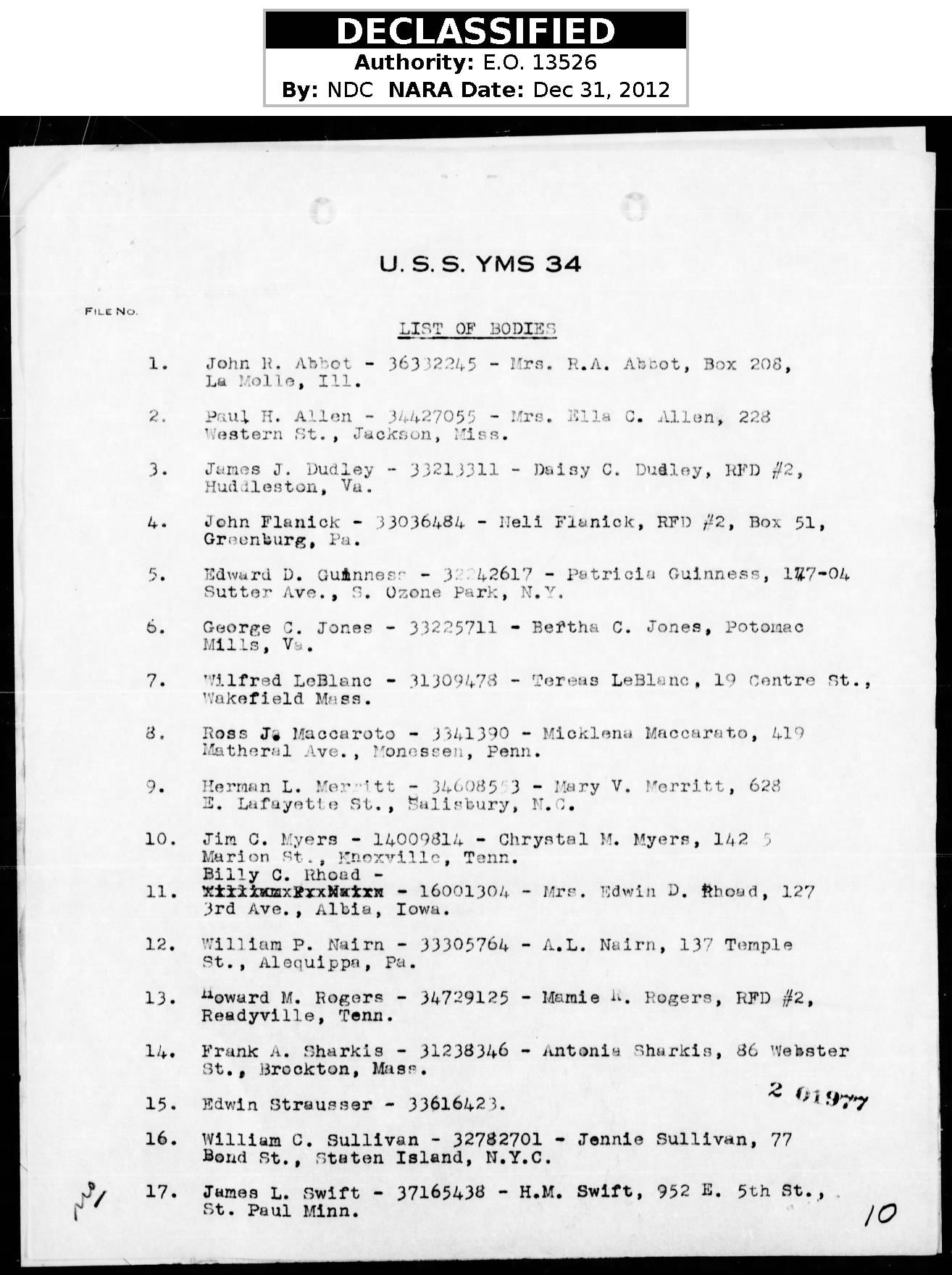 I have his American Flag, his Gold Leaf Cluster and his Purple Heart. To me he is among the Heros of our Military. Thanks to Sen. Alexander and his staff, we were able to set a Tombstone in the Knoxville National Cemetery in his Honor 64 years after his death.Even though I did not know him, I respect and honor his memory.