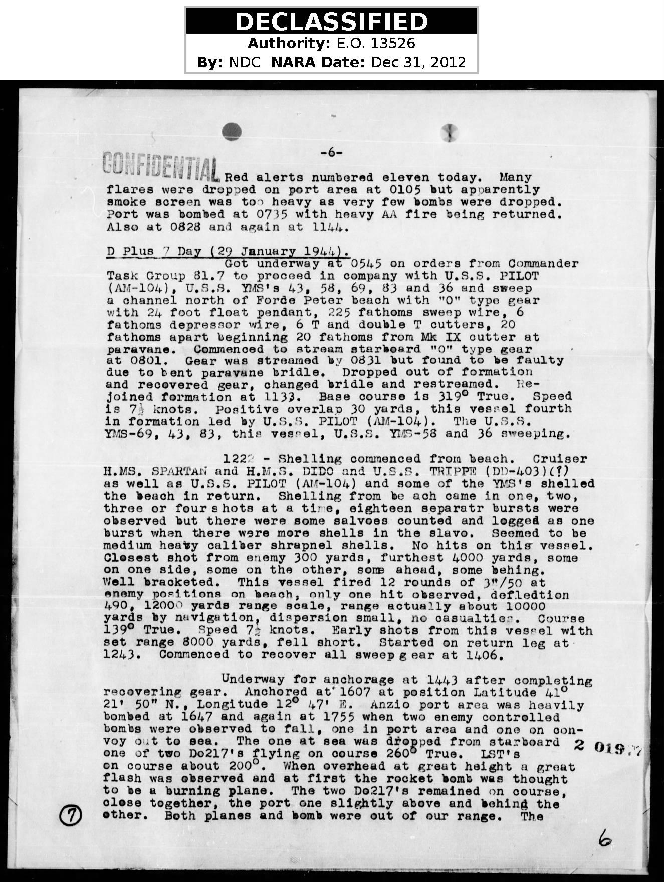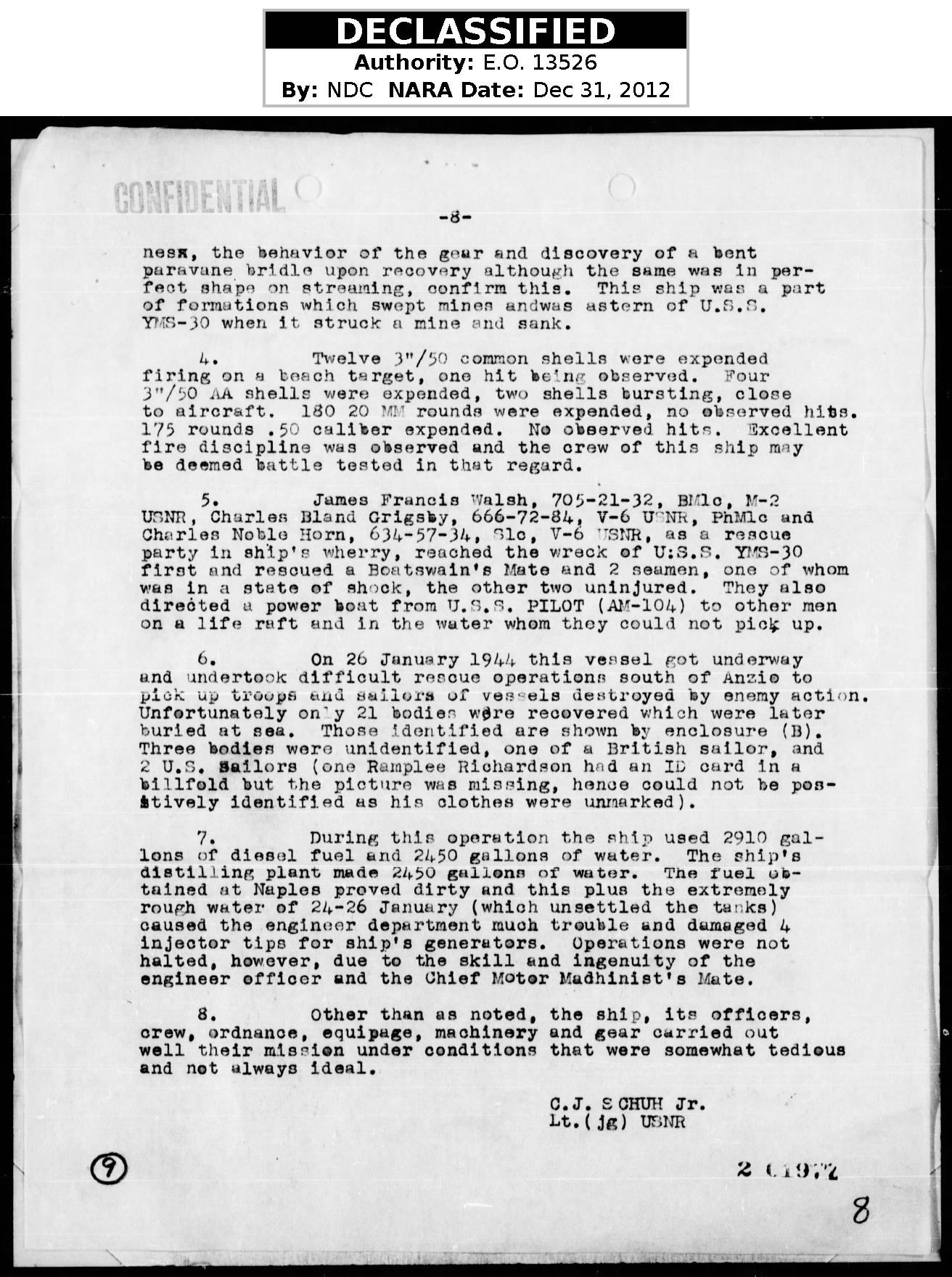 Dad was KIA in Anzio, Italy when a ship, the U.S.S. YMS 34, carrying ammo and fuel was hit by a mine on a stormy sea, and the ship exploded killing most of the men on board. He was with the 83rd Chemical Motor Battalion. Dad was burried at sea and is on the Wall of the Missing in Rome.