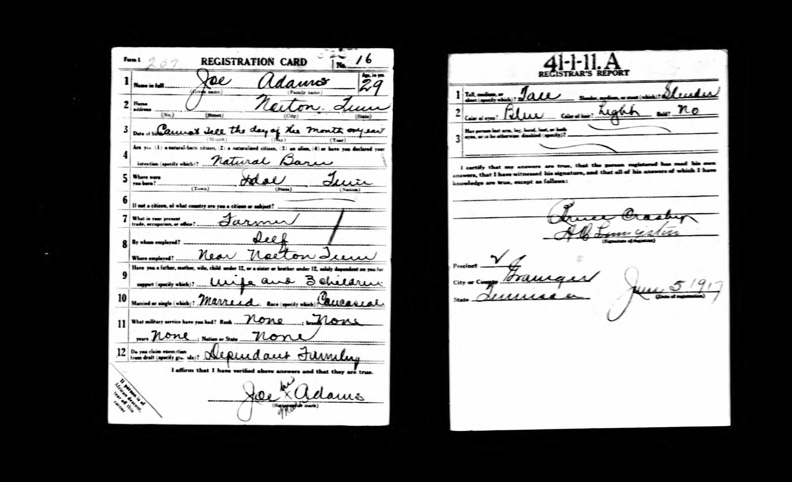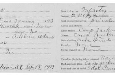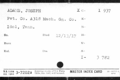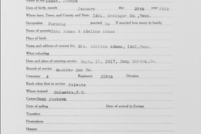 Joseph “Joe” Adams was born in Idol, Tennessee. He died at the age of 24 at Camp Jackson, Columbia, SC of cerebro spinal fever.
