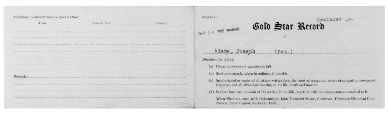 - Burial/Memorial Location: Henry Adams Cemetery, Hancock County, TN